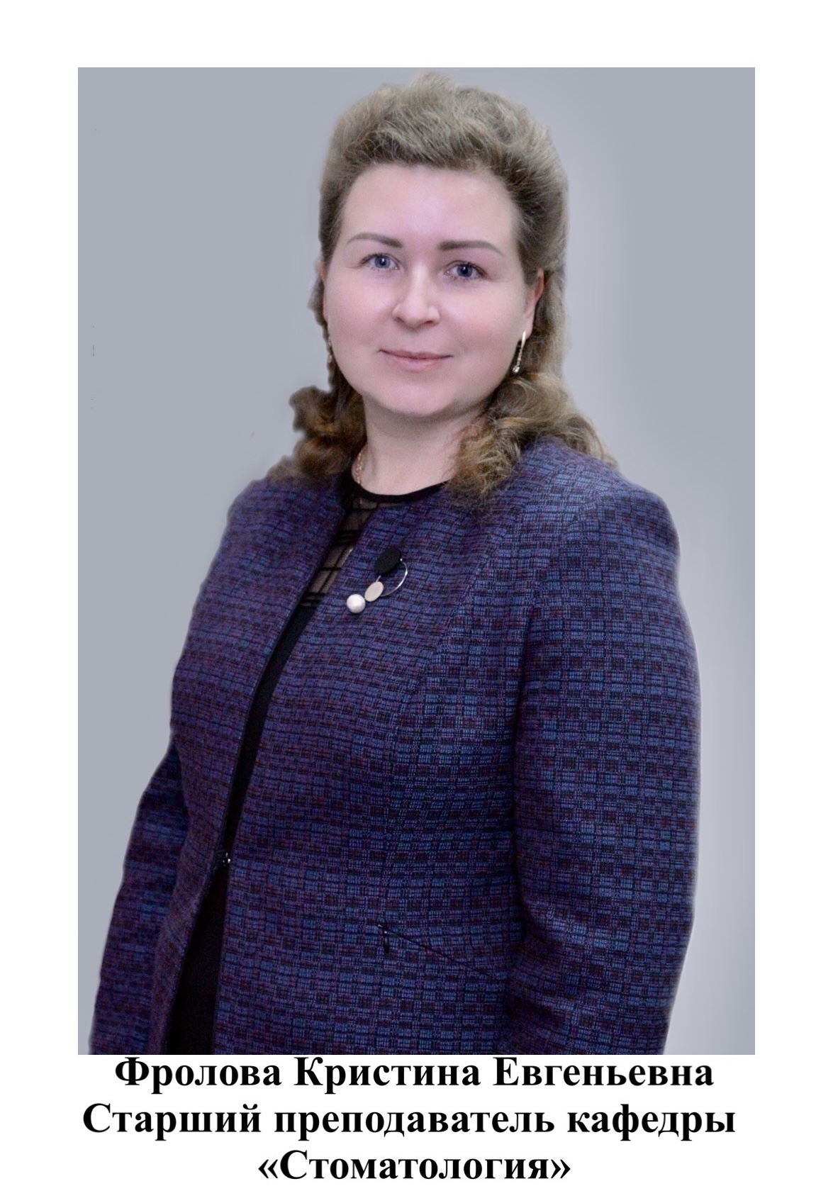 Фролова Кристина Евгеньевна- старший преподаватель кафедры стоматологии. Контактный телефон: 8(8412) 99-94-91.